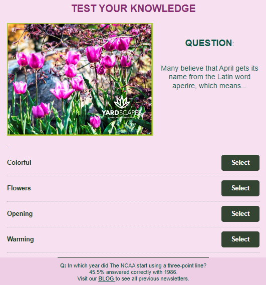 With temperatures nearing 90° today, I think we can say with confidence that we will not see any more snow this spring, but Mother Nature can be funny that way. Our seasonal crew has arrived back to headquarters, and we held our annual Team Spring Kick-Off meeting last Friday. Service anniversaries were awarded, we reviewed our mission statement and safety procedures and then enjoyed a team building cookout.We have completed spring clean-ups and are officially ready for another green season – regardless of what Mother Nature may throw our way! ~Shayne