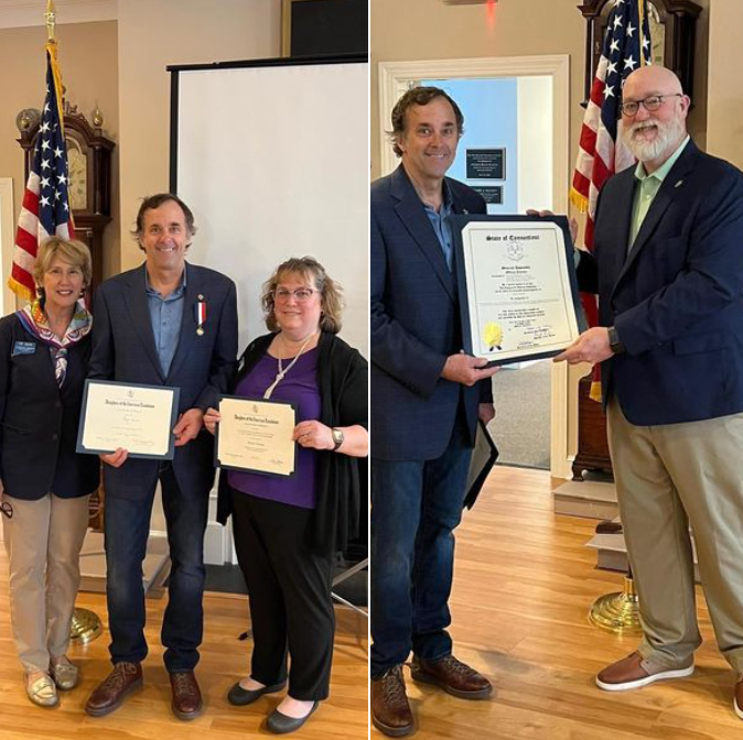 Congratulations to Shayne for receiving the National Society of the Daughters of the American Revolution (NSDAR) Conservation Medal and NSDAR Community Service Award as nominated by and presented from the Daughters of the American Revolution Roger Sherman Chapter and CT State Rep. Bill Buckbee.