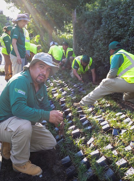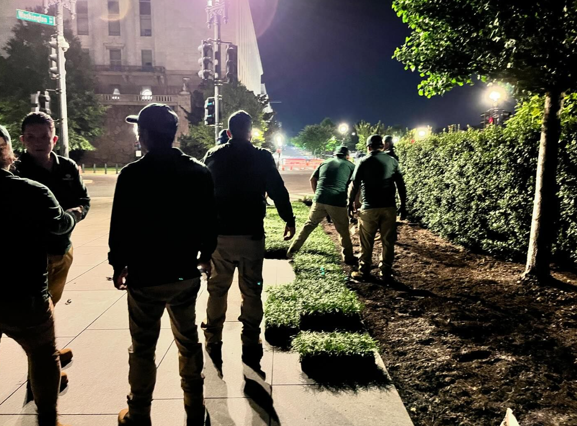As the sun rose over the memorial, volunteers moved quickly to get the thousands of plants, including hollies, hellebores and various ornamental grasses into the ground before temperatures soared to 100°F.